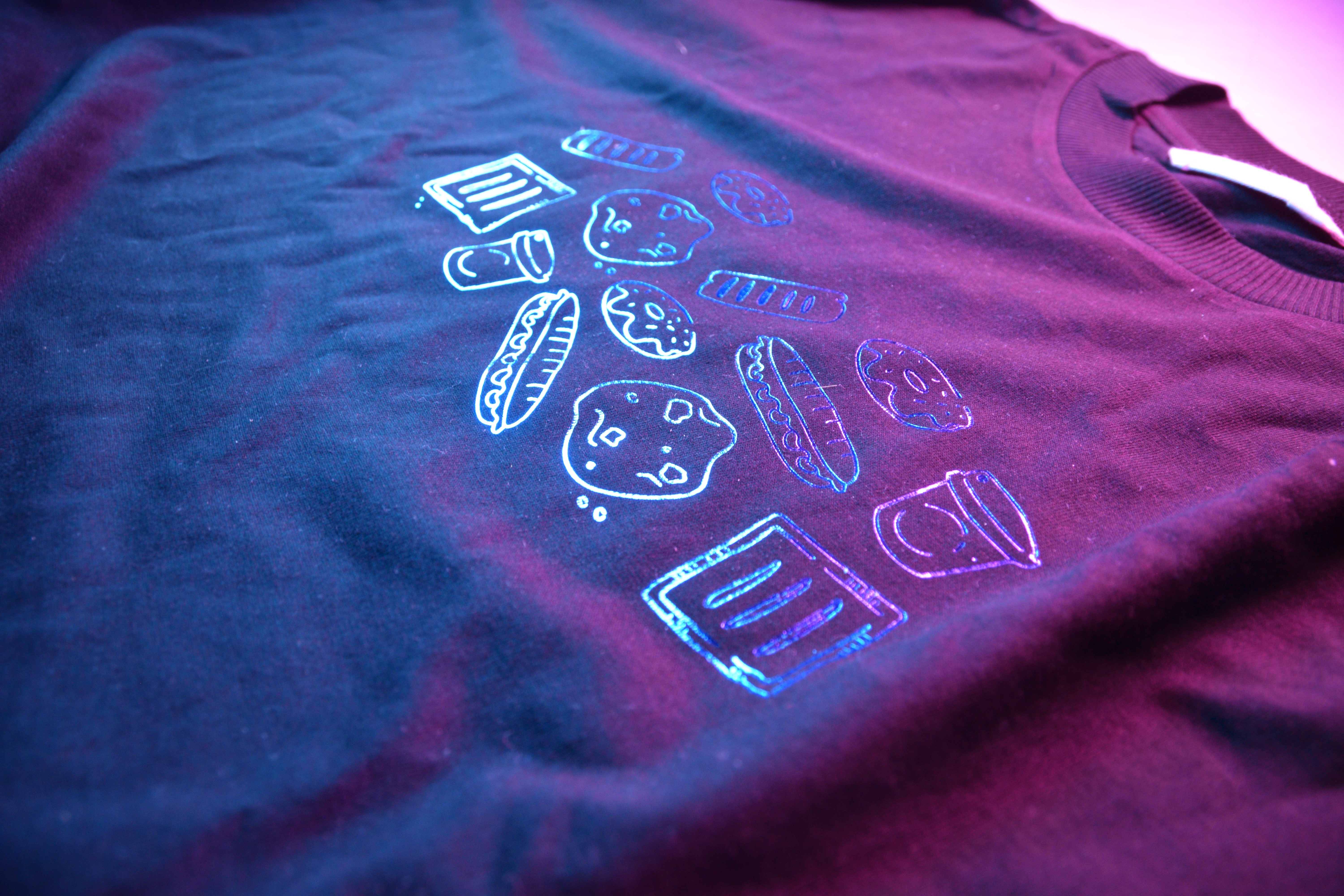GREGGS x ZKUNK / primark sweaters, primark t-shirts, embroidery thread, textile foil