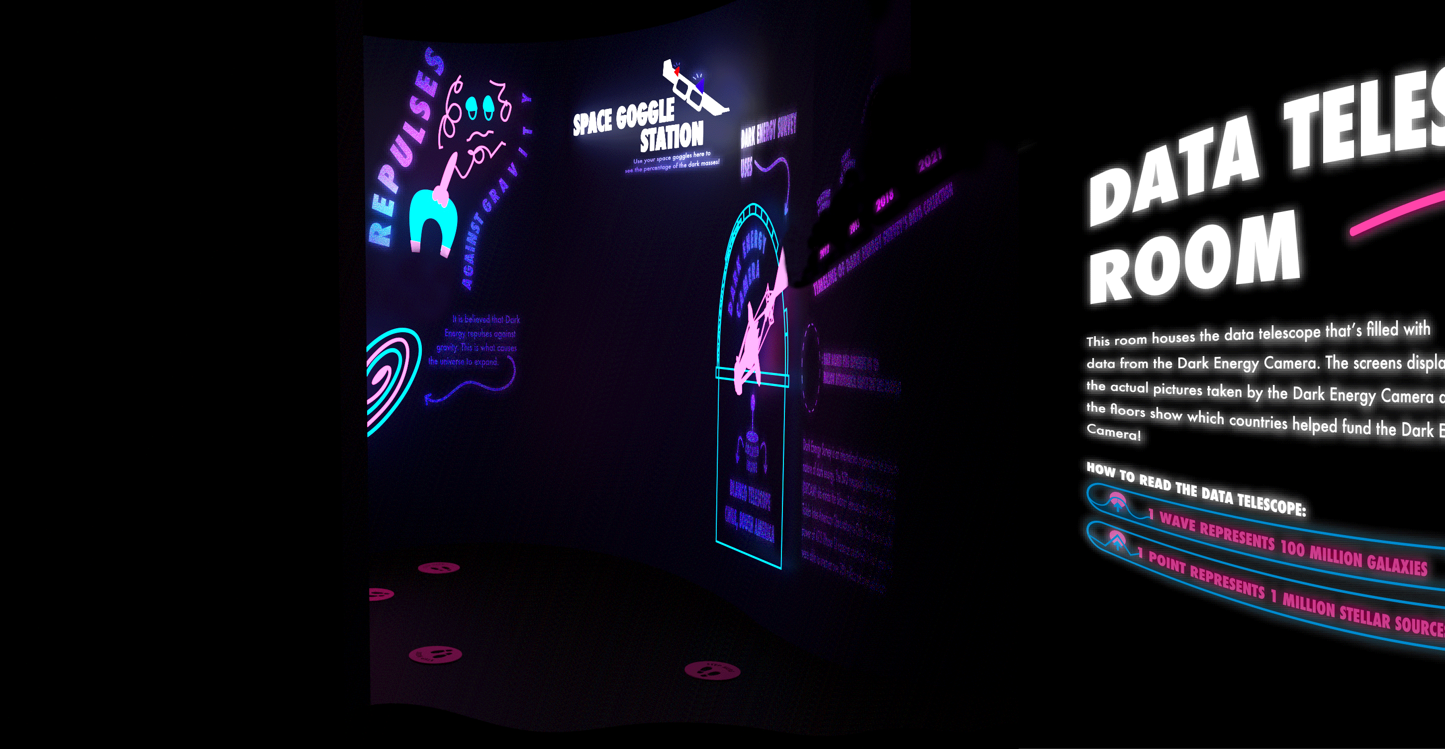 The What’s Out There Exhibition was a pitch project made for Science and Technology Facilities Council (STFC). The aim of this project was to make space data accessible to children and making a complex topic like Dark Energy fun to learn about!